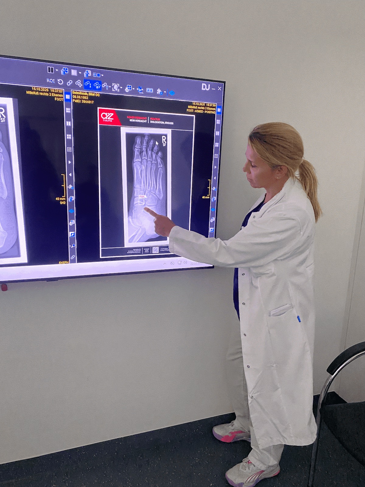 To optimize diagnostic performance, the organization implemented AZtrauma and AZchest, from the Rayvolve® AI Suite, in March 2025. AZtrauma, which achieved the highest AUC for fracture detection in the independent Luiken et al. (2025) study, and regarded as the top-performing AI solution in the global markets, can infer on radiographs within seconds for possible fractures, dislocations, and joint effusions. “Here, we see a nondisplaced fracture in the midfoot region” Dr. Geck notes, pointing to a flagged ROI on the radiograph. “The fracture is not displaced, so it is hardly visible. But the AI has detected a fracture here with high probability”.